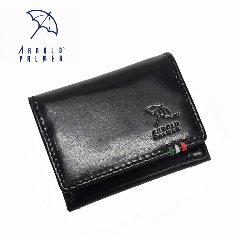 > ARNOLD PALMER アーノルドパーマー 牛革 コインケース/小銭入れ 黒 イタリアンレザー使用 スナップボタン 4AP3311-BK