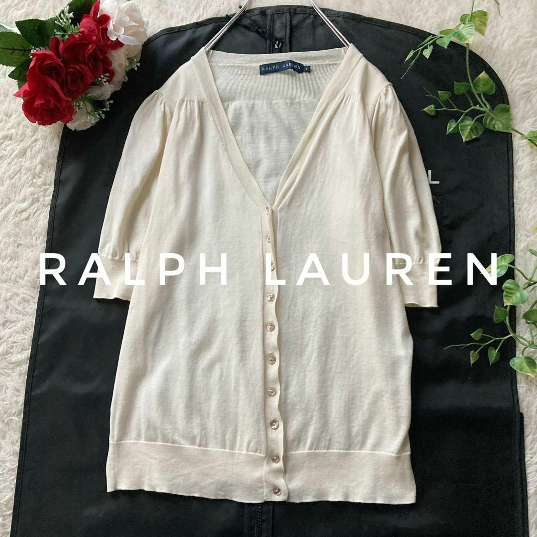 - ラルフローレン ピュアコットン サマーニットカーディガン 五分袖 貝ボタン Lサイズ アイボリー RALPH LAUREN