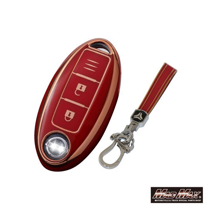 - 日産専用 ゴールドライン TYPE A 2ボタン式 TPUソフト スマートキーケース レッド/ティアナ キャラバン サファリ【メール便送料210円】