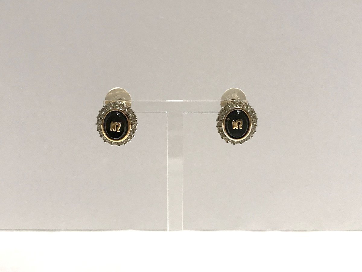 > ■【YS-1】 状態良好 ■ ニナ リッチ NINA RICCI ロゴ イヤリング ■ 石付き GP ゴールド系 × ブラック系 × クリア系 【同梱可能商品】D