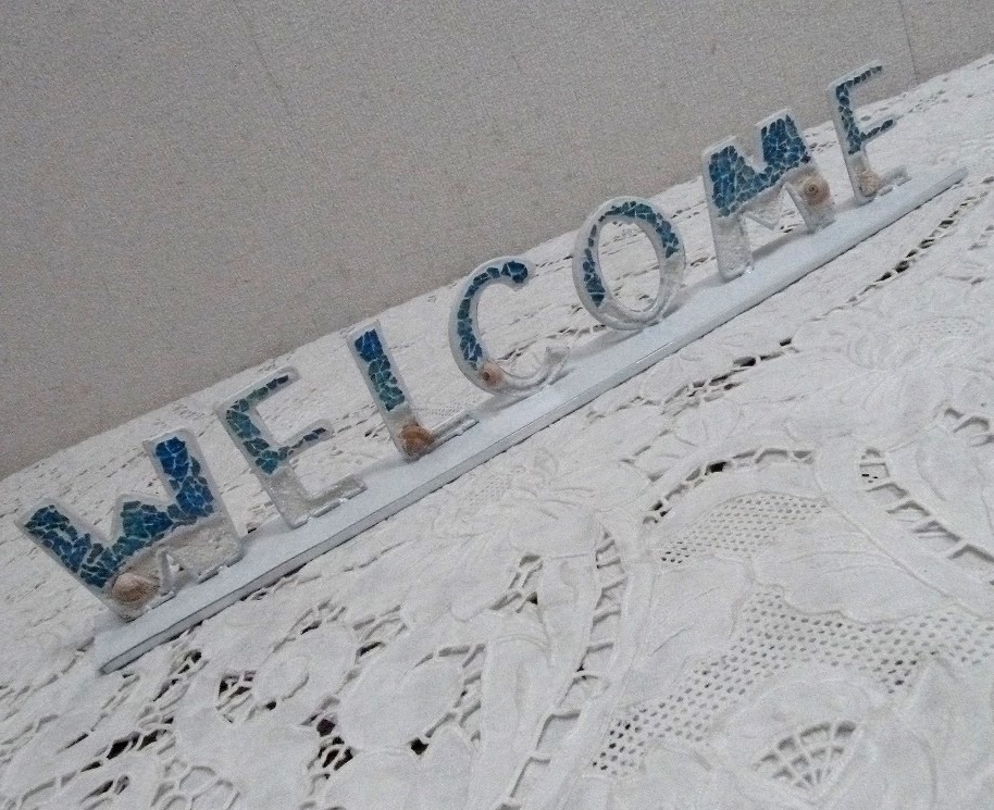 - (☆BM)Welcome/ウェルカムボード④オブジェ 置物 横幅47㎝ マリンブルー×ホワイト ディスプレイ スパンコール 爽やか
