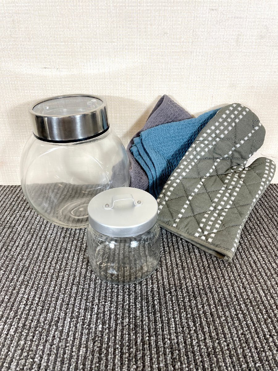 - 【福岡】 キャニスター&ミトン布巾セット◆ 保存容器◆キッチン雑貨◆モデルR展示品◆BR5583_Kh