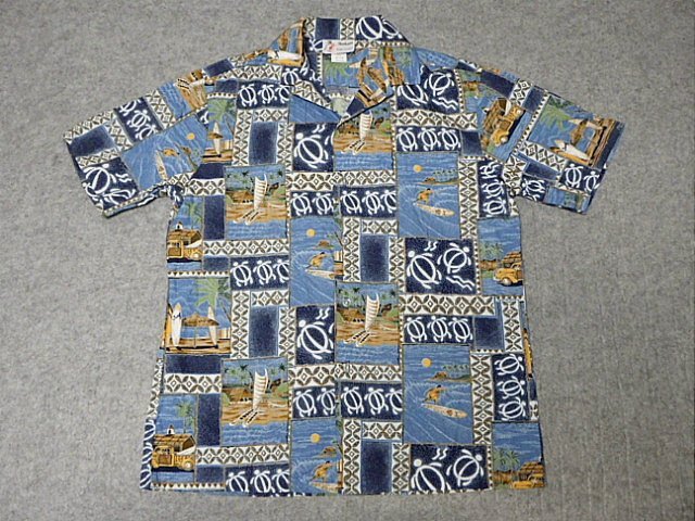 > HOOKANO ホオカノ アロハシャツ Mサイズ USA・HAWAII製 ロングボード シボレーピックアップ ウミガメ 美品