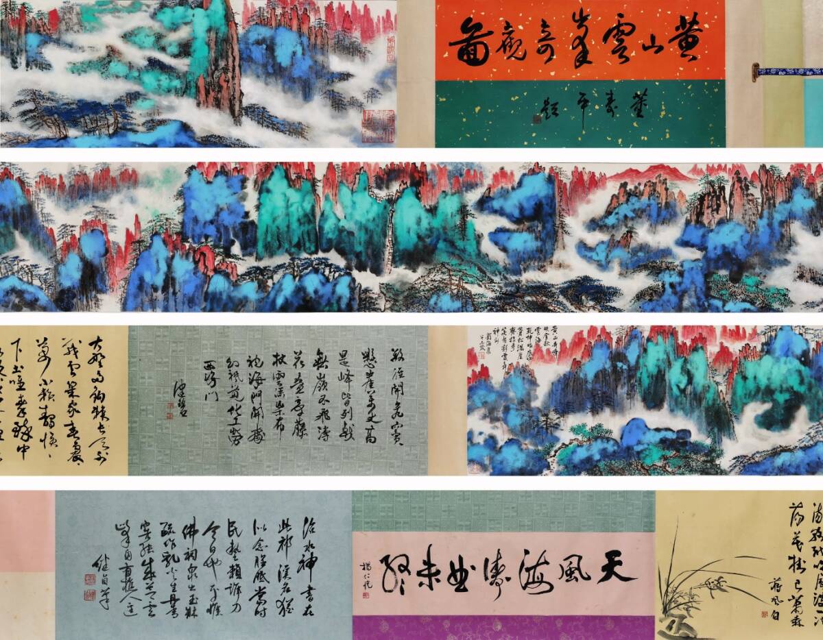 - 古美術 長巻 中国・近現代 「劉海粟書」 紙本 【黄山雲峰図】 手巻 軸装 書道 巻き物 真筆逸品 肉筆保証 唐物 古画 LT-240862