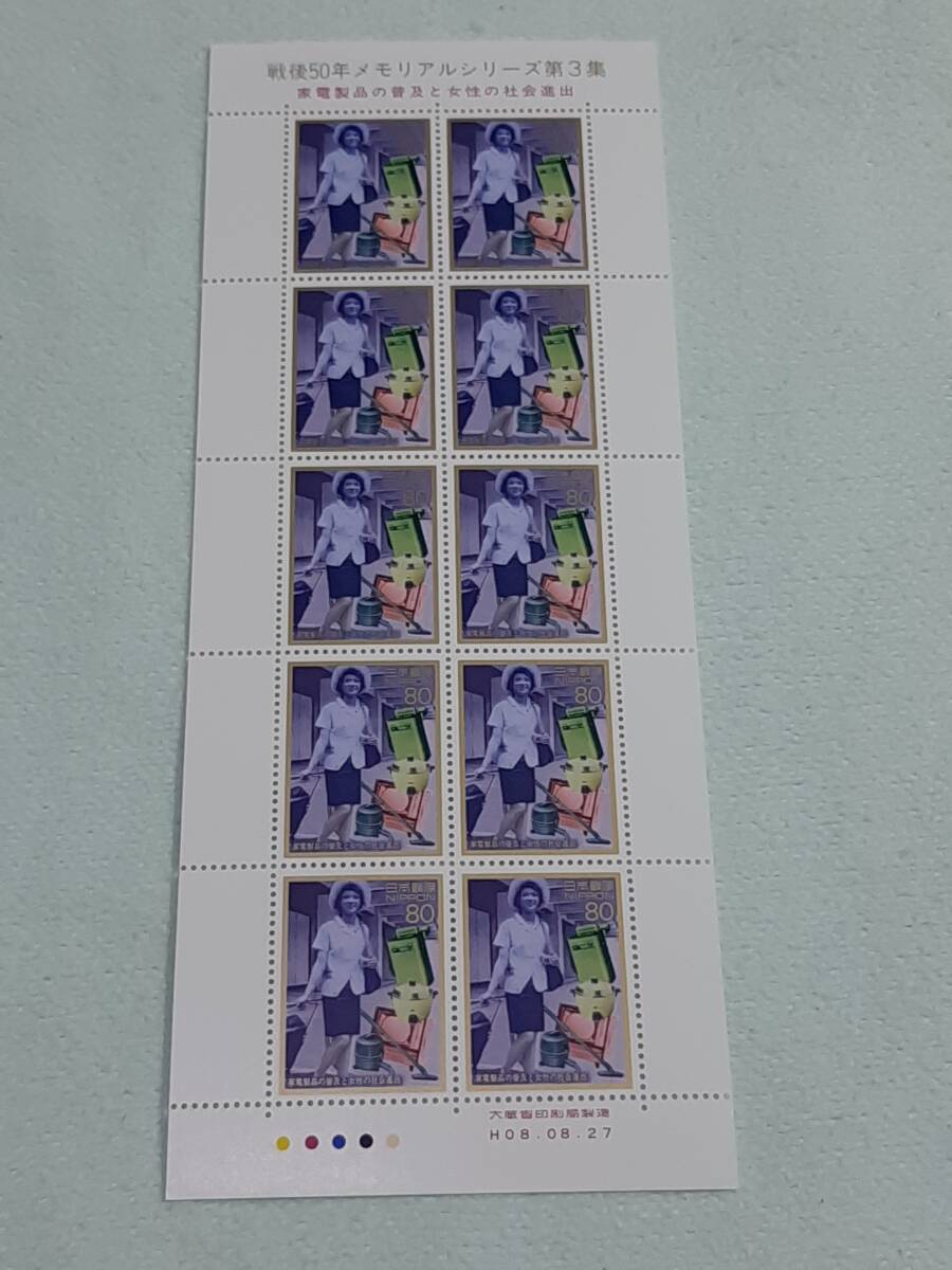 戦後50年メモリアルシリーズ 第3集 家電製品の普及と女性の社会進出 H8 切手シート1枚