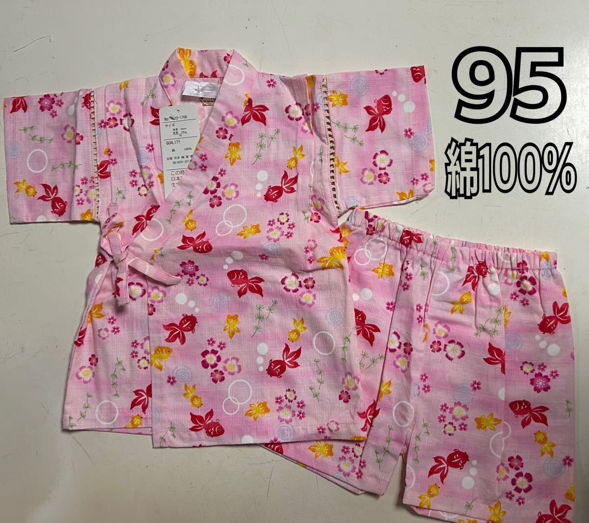 - 95 甚平さん 綿100 大人気 金魚柄 キッズじんべい 女の子 子供甚平 新品 夏祭り