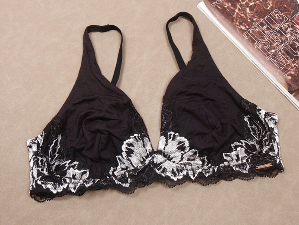 - *:* 三角ブラ ノンワイヤー ブラジャー D75 イギリス超柔らかな繊細総レース*高級ブラジャー 黑