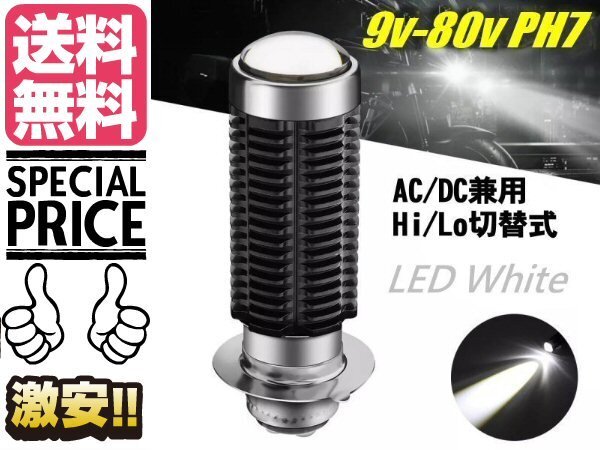 - 9〜80v対応 12v AC 交流 DC 直流 兼用 バイク ヘッドライト LED PH7 P15D HiLo切替 6000k 白 ホワイト 電球 バルブ メール便送料無料/5