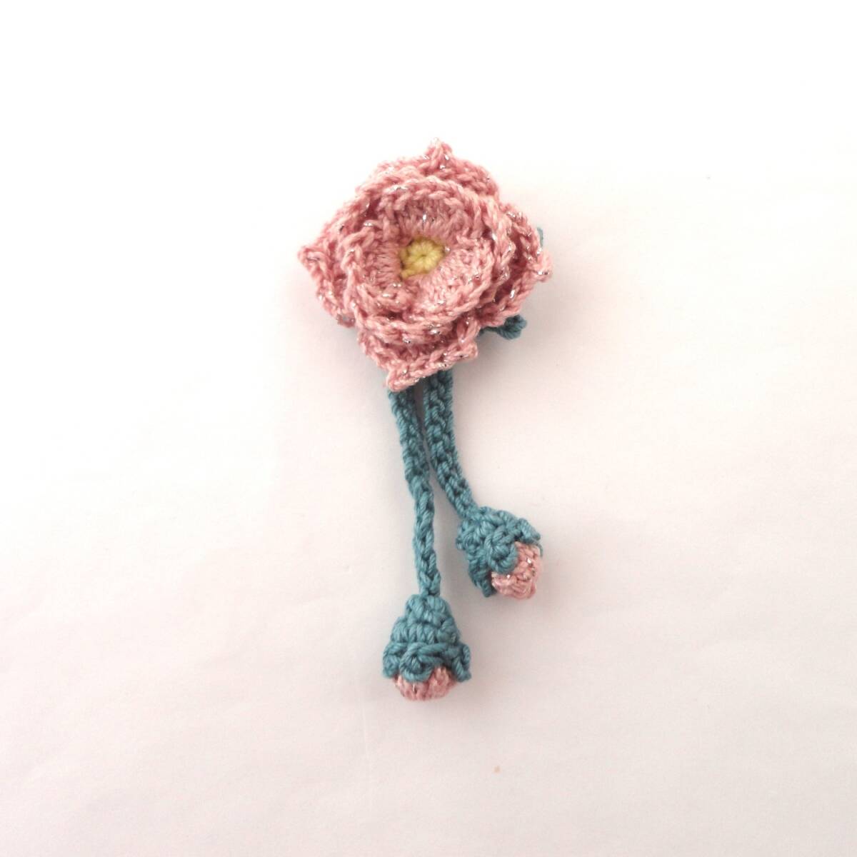 - ツボミが揺れる♪バラのブローチ*PKラメ*レース編み*ハンドメイド*b640