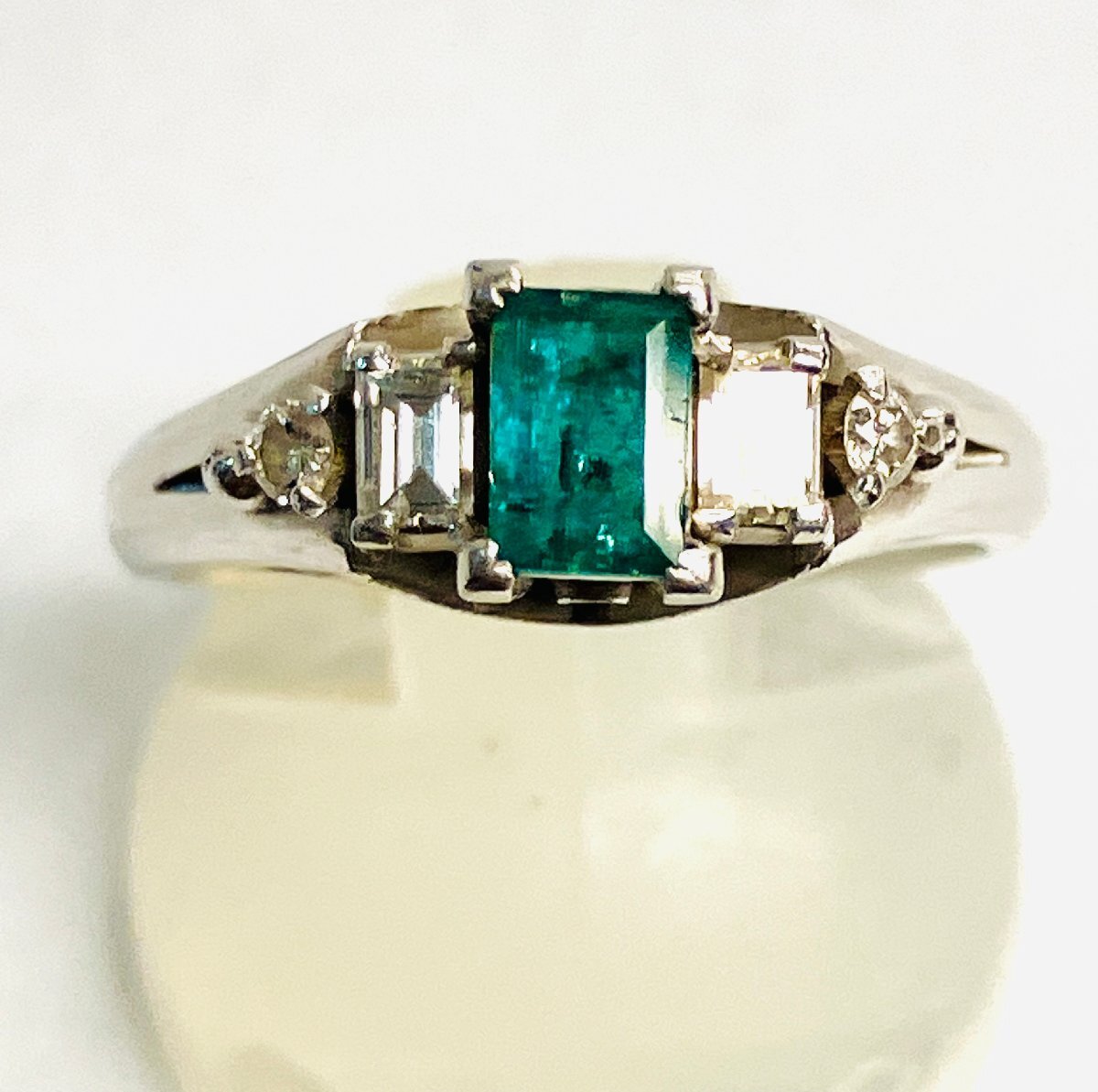 - qoj.Z2D03 PT850 プラチナ エメラルド×ダイヤ スクエアー テーパーダイヤ E0.29/D0.25 リング 11.5号