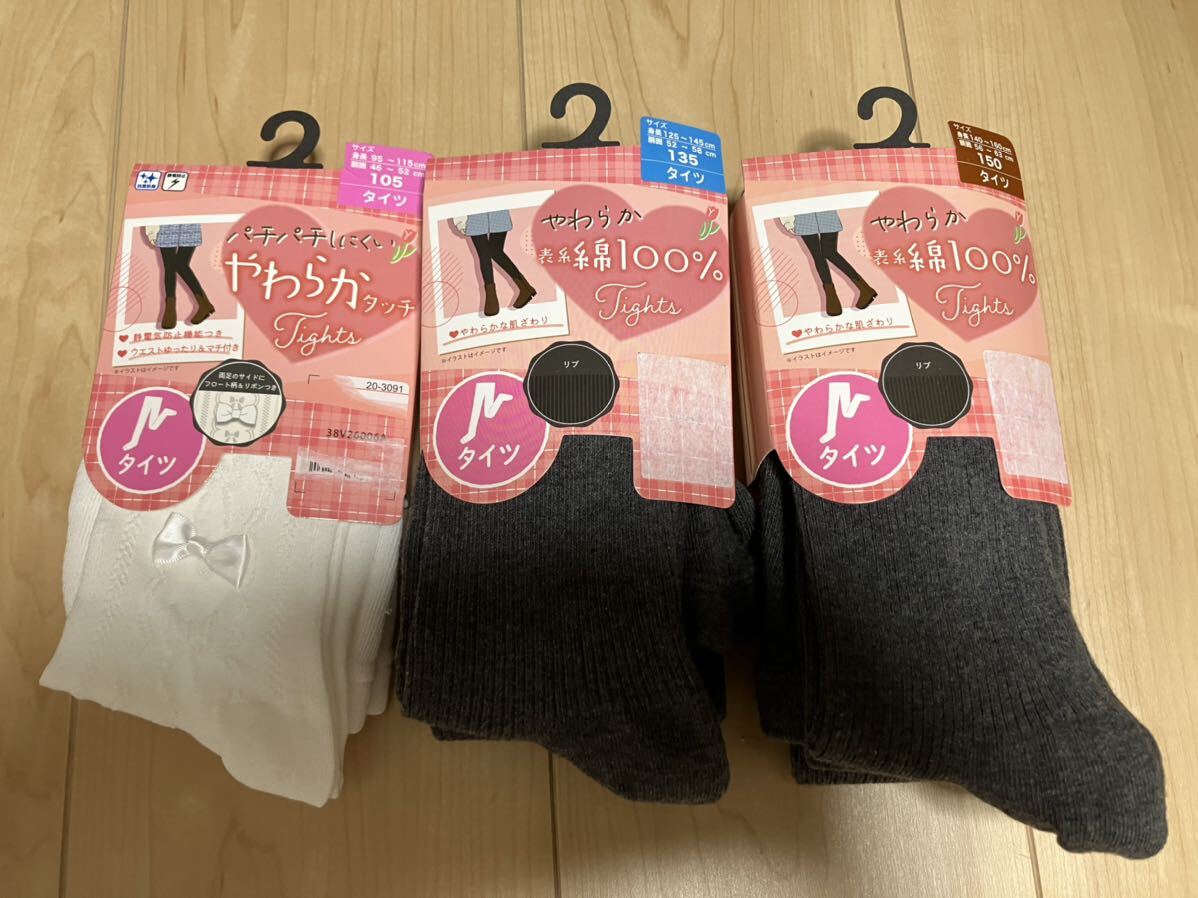 - キッズタイツ 3種セット あったか 姉妹 105 135 150 リボン