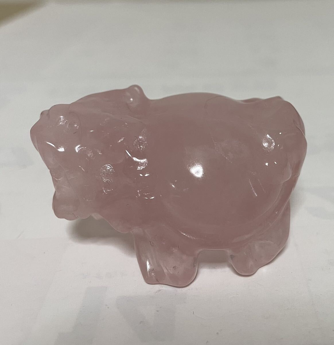 - ピンククォーツの貔貅 天然石の彫刻 置物インテリア 魔除 お守 浄化 幸運 ローズクォーツ 恋愛運 クリスタル 水晶 風水晶 パワーストーン