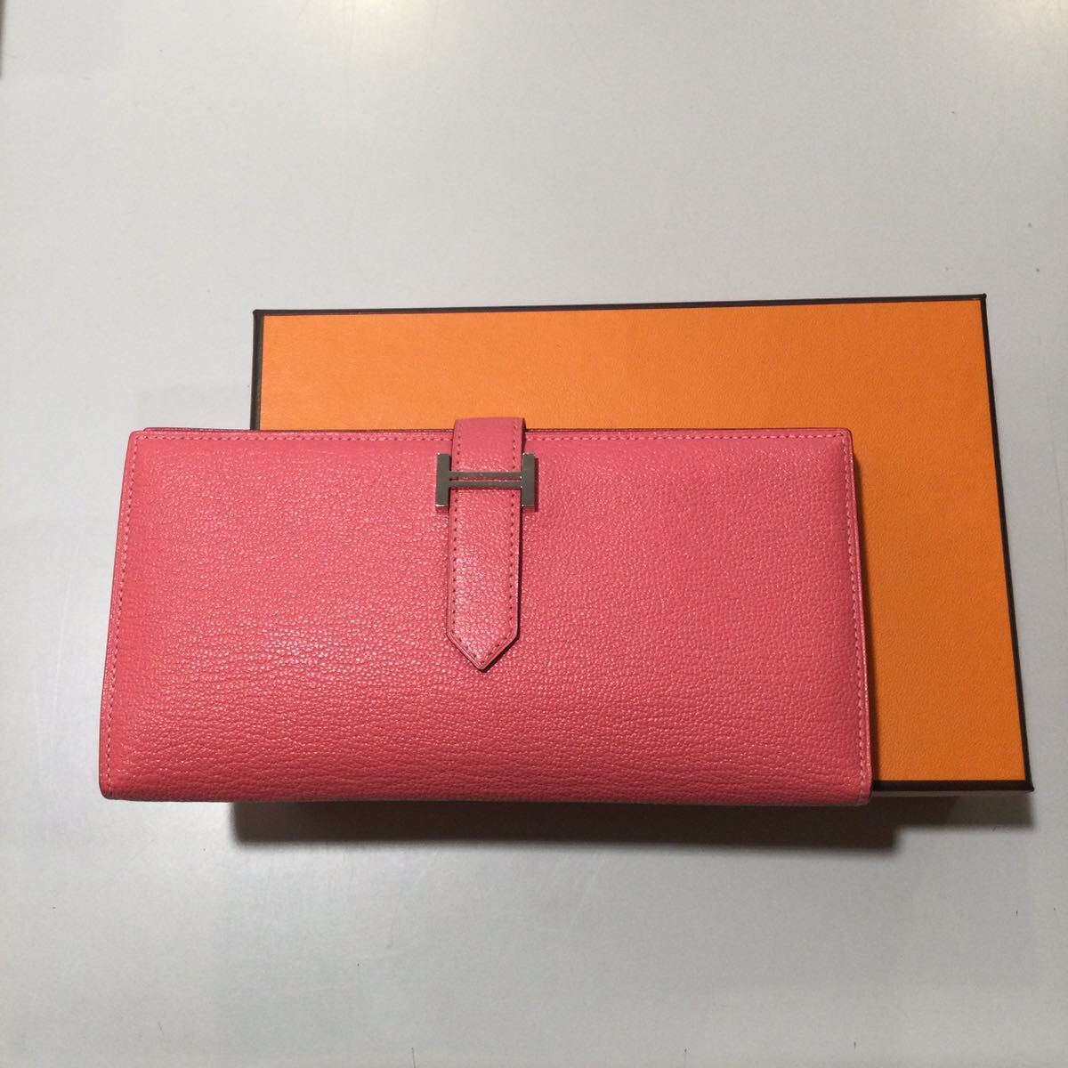 - HERMES エルメス 長財布 ピンク シルバー ベアン c刻印 箱付 レディース 569088
