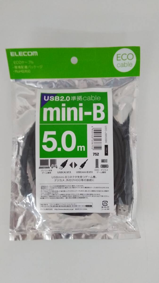 > 【TN-1133】未開封品/ELECOM/USB2.0準拠ceblu mini-B 5.0m/ECOケーブル/PC/ゲーム機/周辺機器/動作未確認【HK】