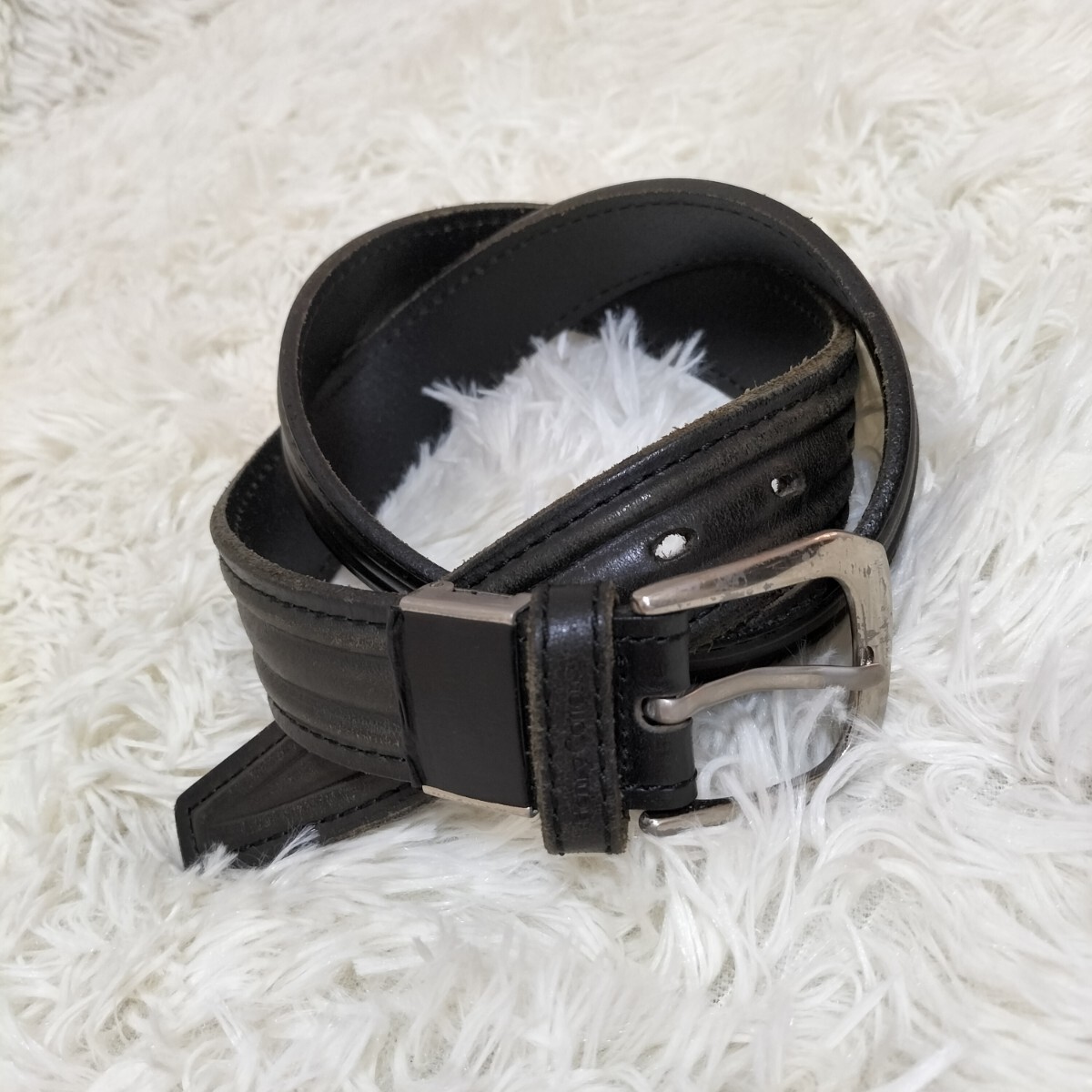 > ★Henry Cottons ヘンリーコットンズ レザー ベルト ブラック ダークブラウン 茶芯 本革 牛革 肉厚 メンズ サイズ32 ブランド古着 USED