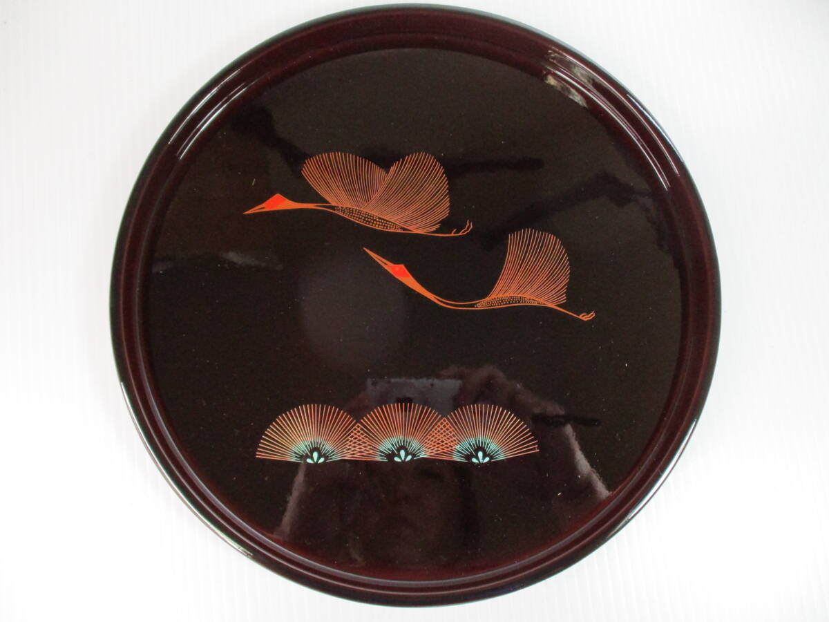 - S-1078 お盆 トレー 黒 金鶴 ユリア樹脂 未使用 長期保管品