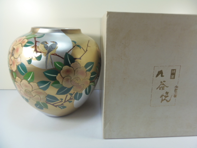 > k257 【九谷焼 九谷玉竜】 花瓶 壺 金銀花鳥文様 ※難有(金部分に茶色いムラ・傷・塗溜り有)【同梱不可】