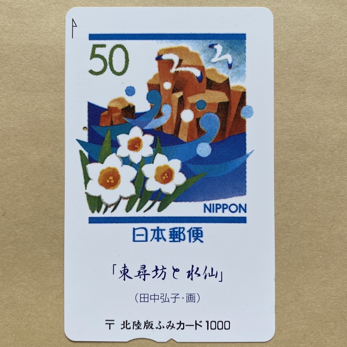 - 【使用済】 ふみカード 北陸版 「東尋坊と水仙」(田中弘子画)