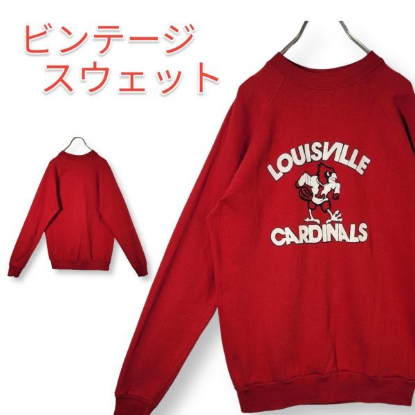 - 80s LOUISVILLE CARDINALS カレッジロゴ スウェット 赤 レッド トレーナー カージナルス ラグラン ビンテージ プリント 裏起毛