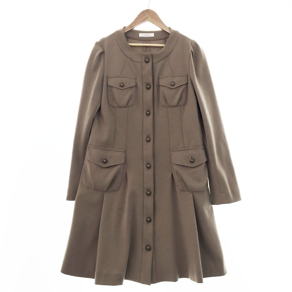 - ★CHILLEA キリア 長袖 サファリポケット ジャージコート サイズ40 レディース グレージュ グレー ベージュ ジャケット 3BC/91947