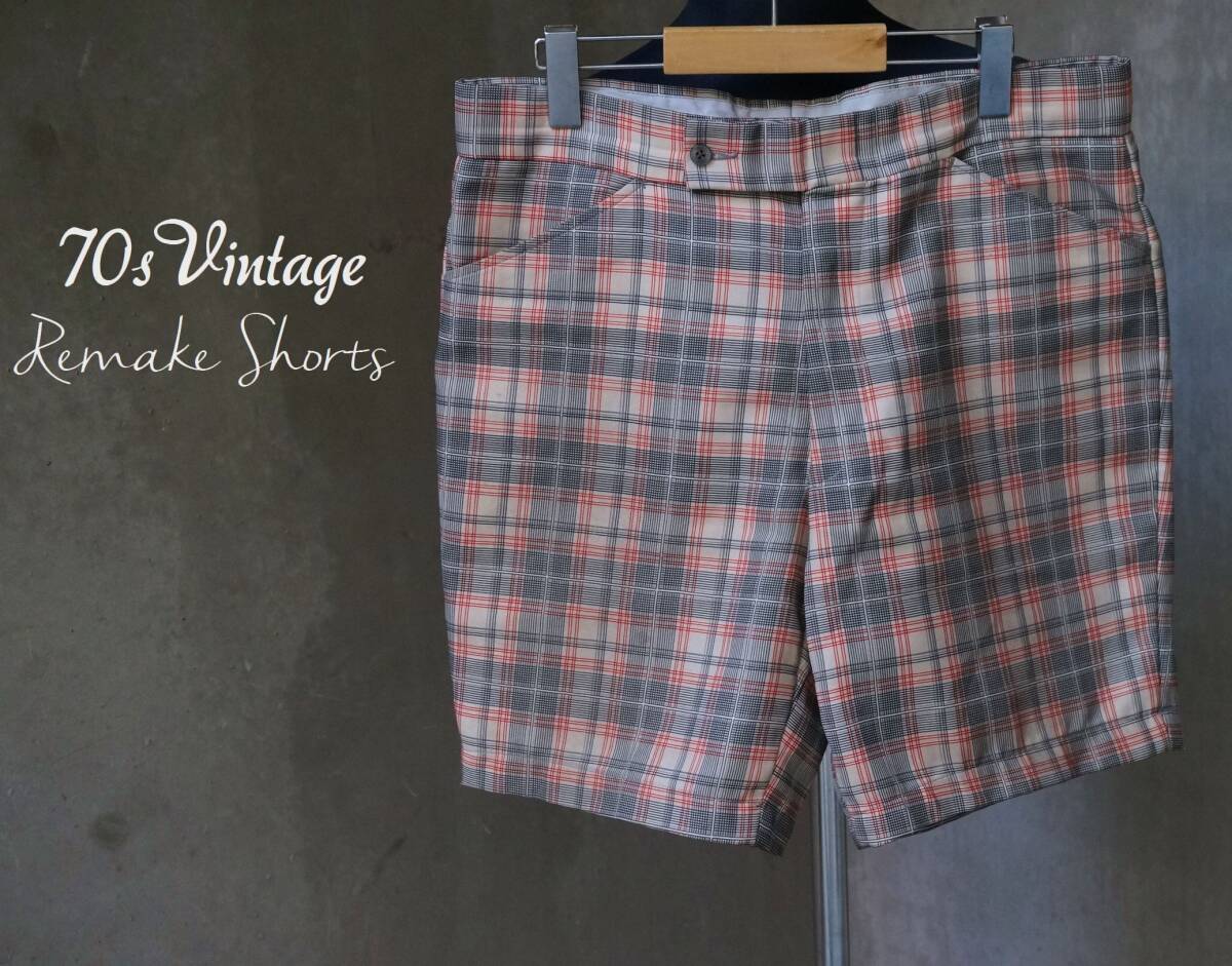 - 70s ヴィンテージ リメイク ショーツ チェック ポリエステル ショートパンツ W89