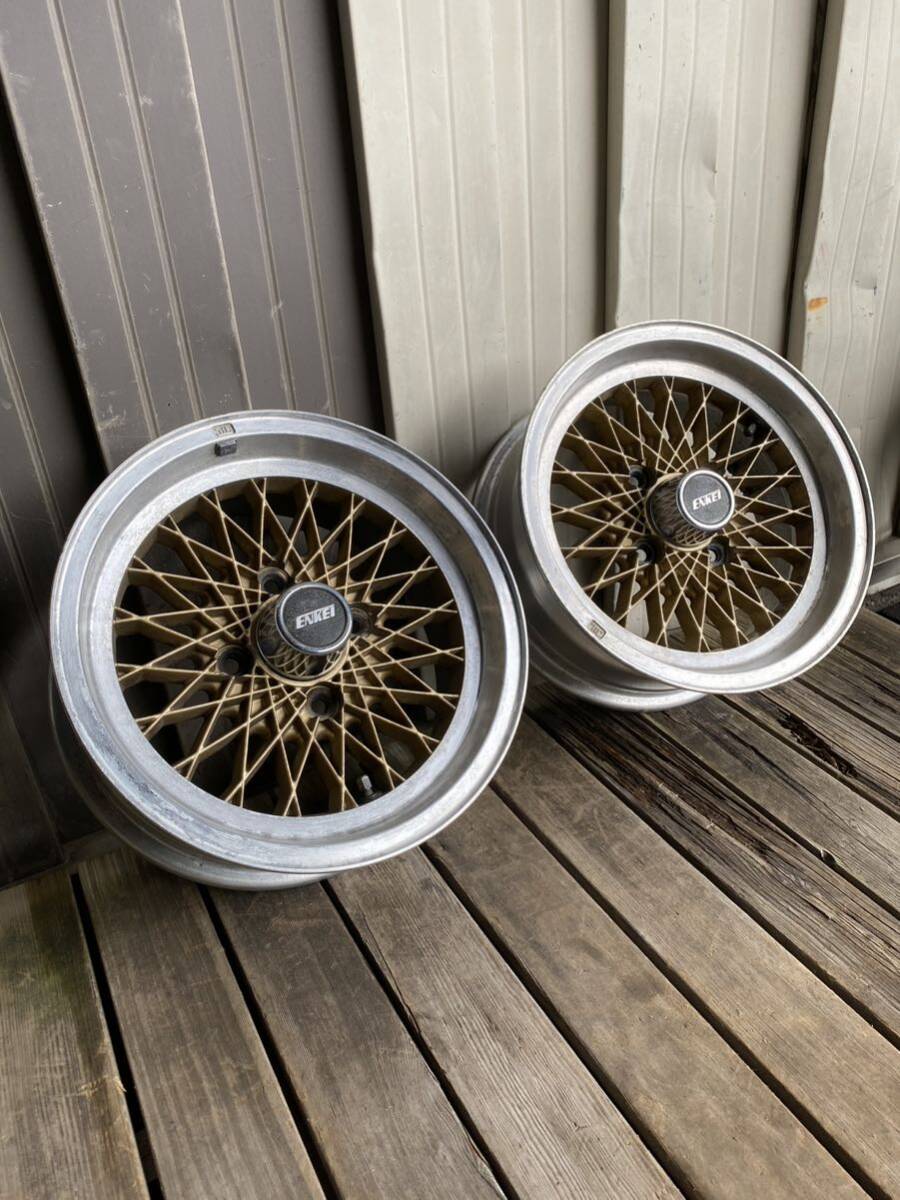 > エンケイ ENKEI メッシュ ゴールド ホイール 2本 セット 6J 14インチ 4穴 4H PCD114.3 センターキャップ付 社外 中古 当時物 旧車 カスタム