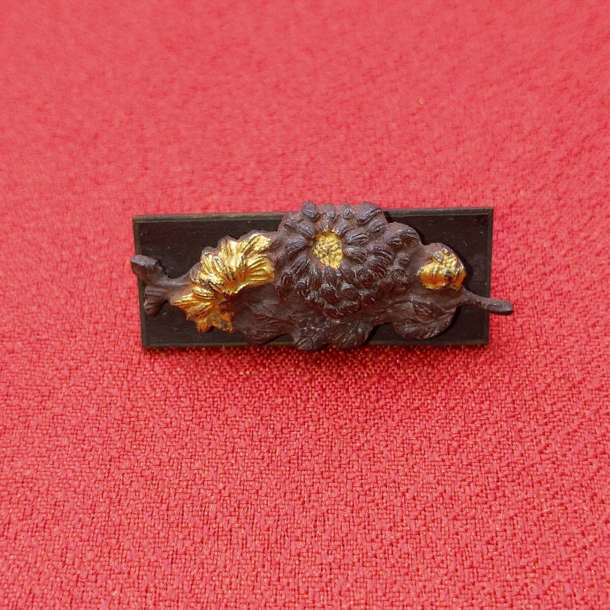 - 前金具 時代 金具 日本刀の部品 胴乱 煙草入れ 煙管入れ 菊 花 骨董 35㎜ 【5263】