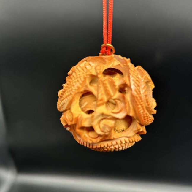 - 双龍彫刻球体 木彫り 龍 置物 インテリア 雑貨 57