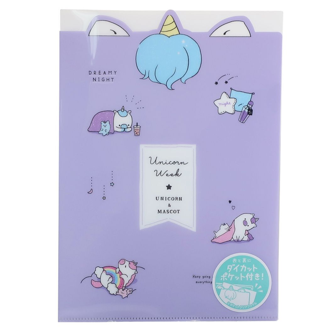 - ダイカット 3ポケット A4 クリアファイル グッズ UNICORN WEEK 女の子向け ポケットファイル ユニコーン【セール】