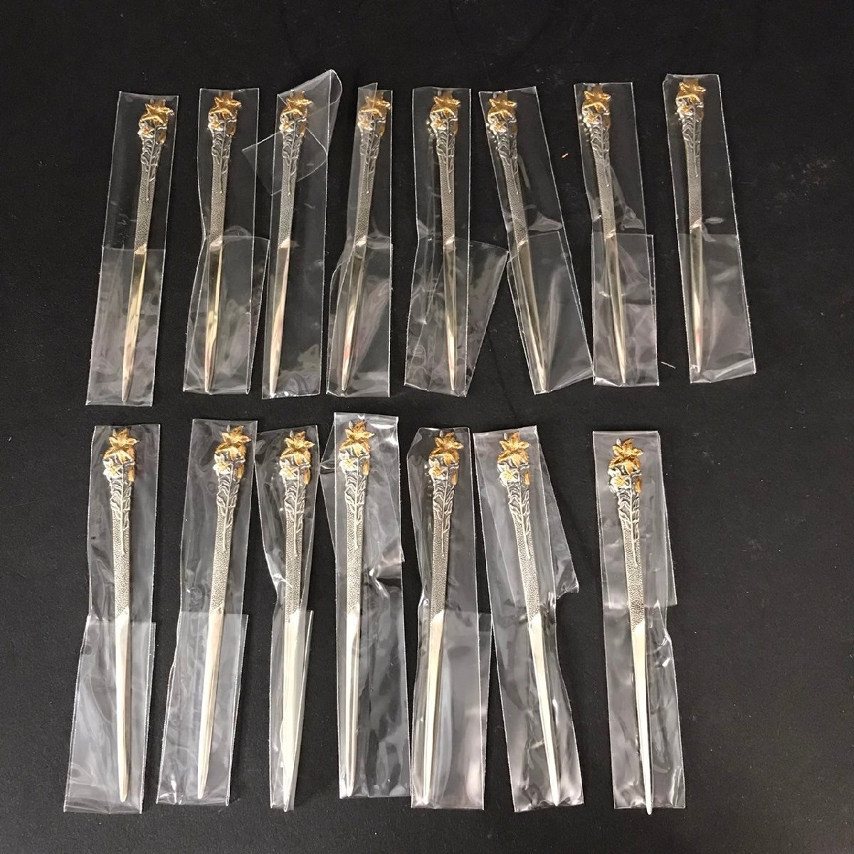 - ER0822-26-3 銀製 菓子楊枝 花柄 キッチン用品 銀楊枝 ダイニング silver925 シルバー 120g 15本 記名あり 全長11.5cm 60サイズ