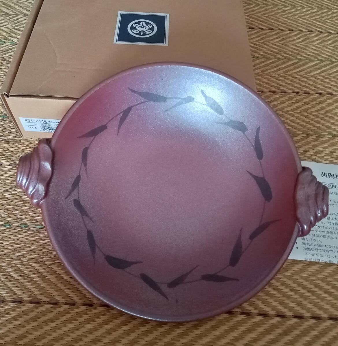 > 橘吉 たち吉 茜 陶板鍋(小 24.8×28.5×6cm位) 直火対応 すき焼き、炒め物など 調理器具として盛り鉢として 温かいまま食卓へ 未使用