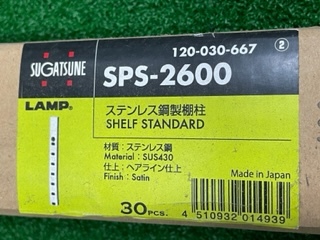 > 棚柱 ステンレス鋼製棚柱 LANP ランプ SPS-2600 スガツネ(LANP)30本入1ケース 保護テープ付 NO.1 未使用 引取りに限る 発送不可