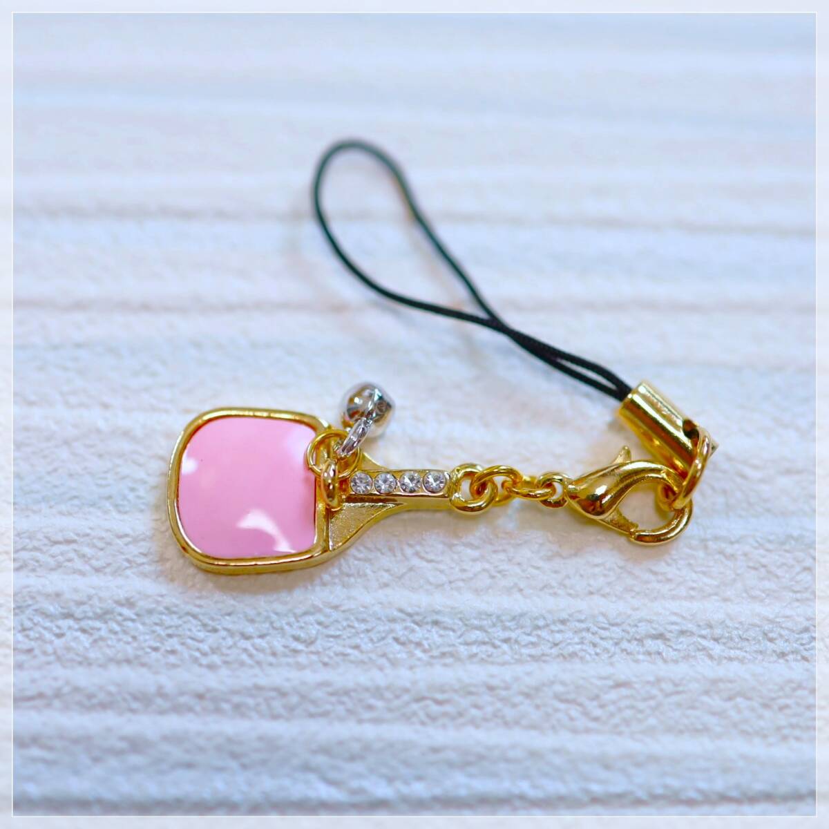 - K6072/卓球ラケット ピンク ボール スマホストラップ 飾りチャーム 卓球部 スポーツ 上質綺麗 お祝い プレゼントにおすすめ