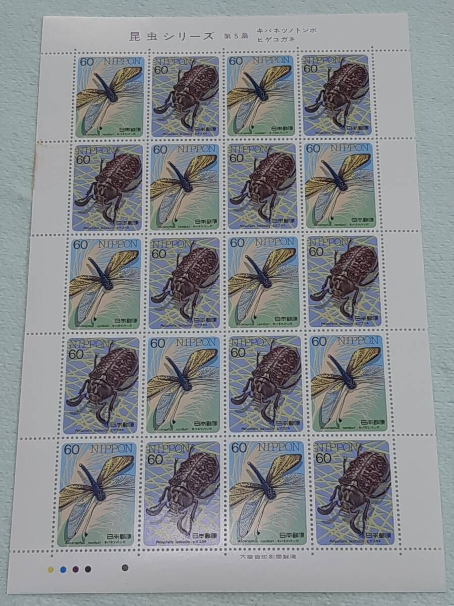 昆虫シリーズ 第5集 キバネツノトンボ ヒゲコガネ 1987 切手シート1枚