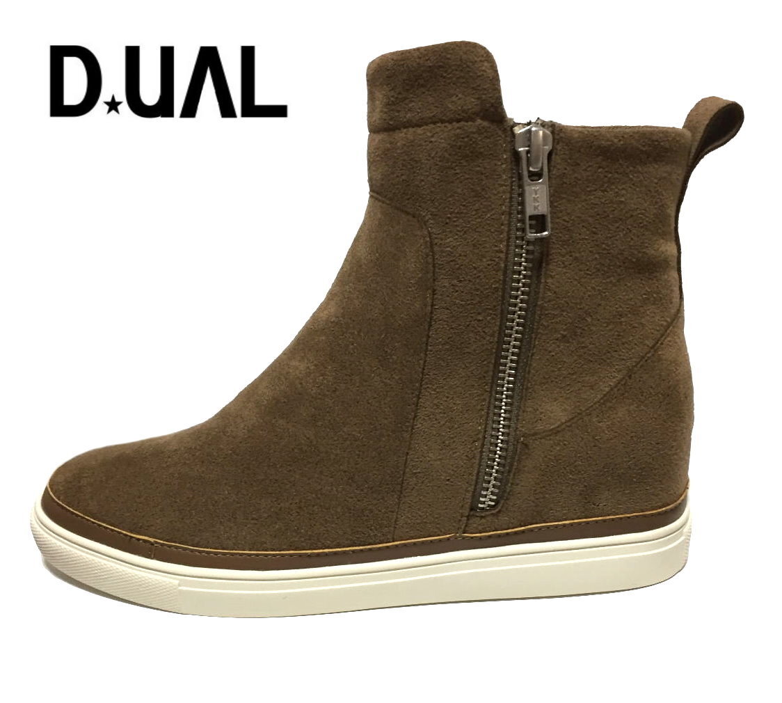 - DUAL デュアル フェイレザー ヌバック調 ファスナー開閉 ショートブーツ モカベージュ 22.5cm