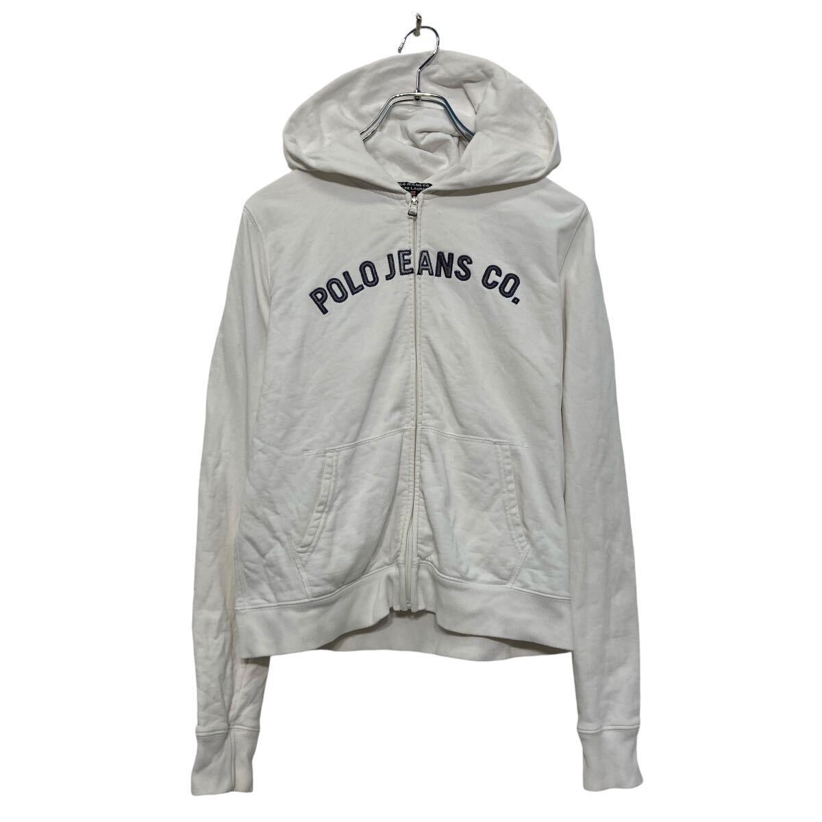 > POLO JEANS CO. プリント スウェット パーカー ラルフローレン S ホワイト キッズ フルジップ 古着卸 アメリカ仕入 a608-7048