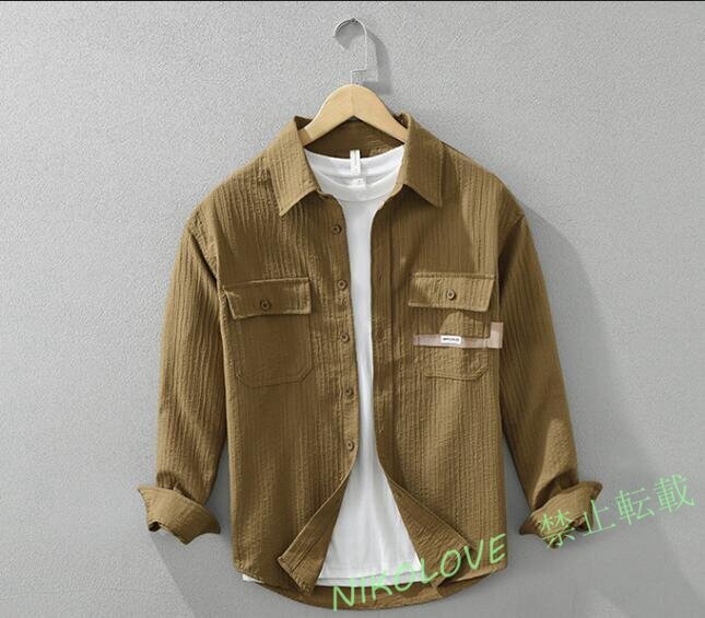 - 新品 長袖シャツ シャツジャケット カーゴシャツ ワークシャツ メンズ トップス カジュアル 春秋服 ブラウン 3XL LF927