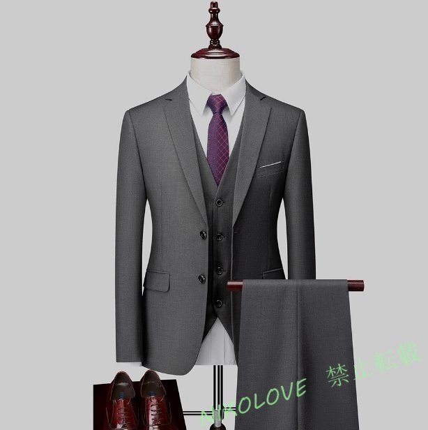 - 新品シングルスーツ スーツ メンズ スリーピース ビジネススーツ 無地セットアップ 3ピーススーツ カジュアル 洗える 通勤 結婚式 LG562