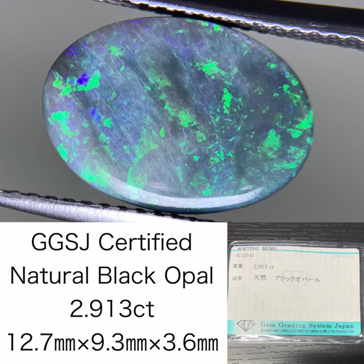 > ブラックオパール 2.913ct 宝石ソーティング付き 12.7×9.3×3.6 ルース( 裸石 ) 2584Y