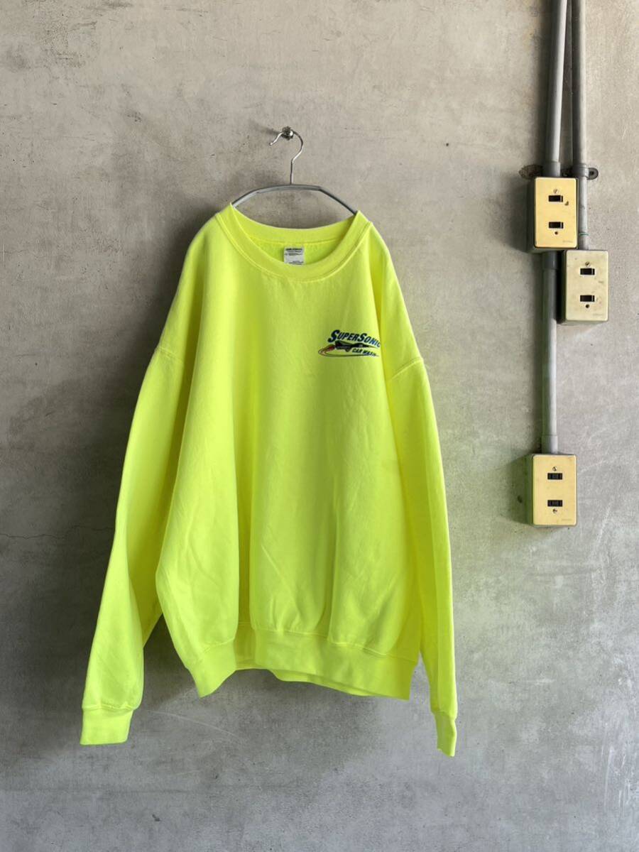 > 00s 2000年代 super sonic car wash GILDAN ネオンカラー ライムグリーン ビビット 企業 トレーナー スウェット 古着 ビンテージ ロゴ XL