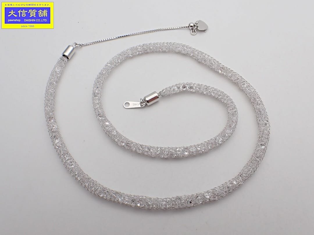 > K14WG ホワイトゴールド ロープチェーン ネックレス キュービックジルコニア 12.17g 中古A 【送料無料】 C-9194