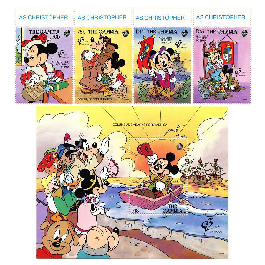 - ディズニー ミッキー&ミニー&ドナルド&グーフィー 切手/小型シート1枚&切手4枚(グラナダ国際切手展92) 発行国Gambia 1992年