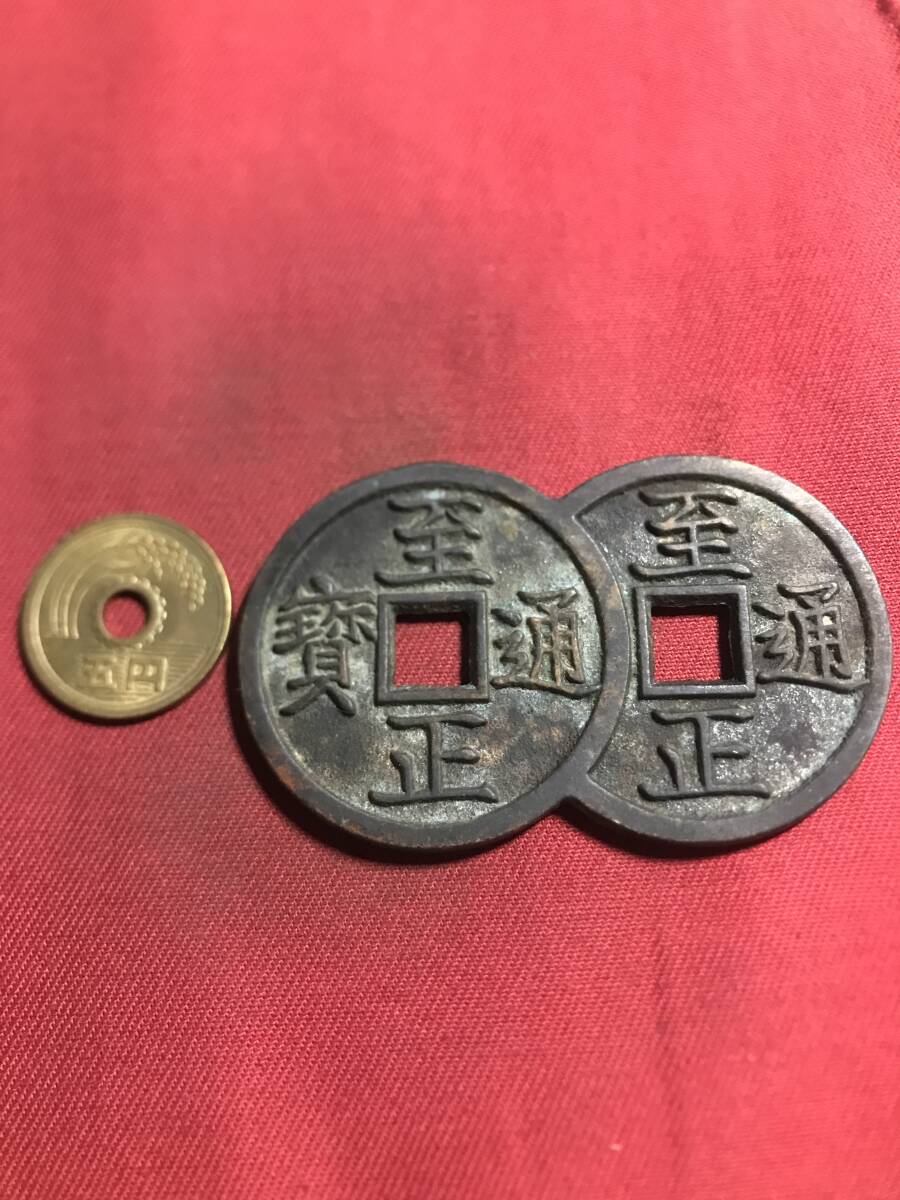 - 至 正 通 寶 背 記号 2枚を重ねて (平-15)