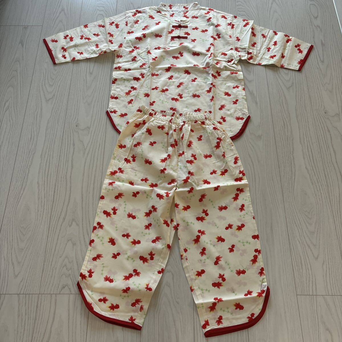 - 未使用●チャイナ パジャマ アイボリー 上下 2点 セット/Mサイズ/中国/チャイナ服/キンギョ/金魚/白/ホワイト/部屋着/寝間着/女性★1780-2