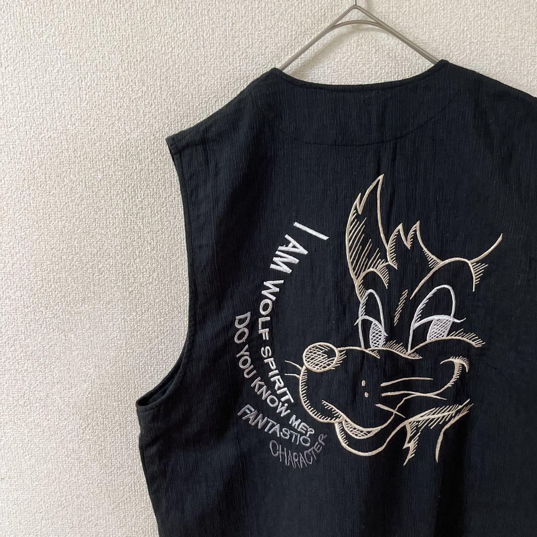 - アメカジ キャラクター刺繍ベスト ジレ Lメンズ 春秋 W3 黒