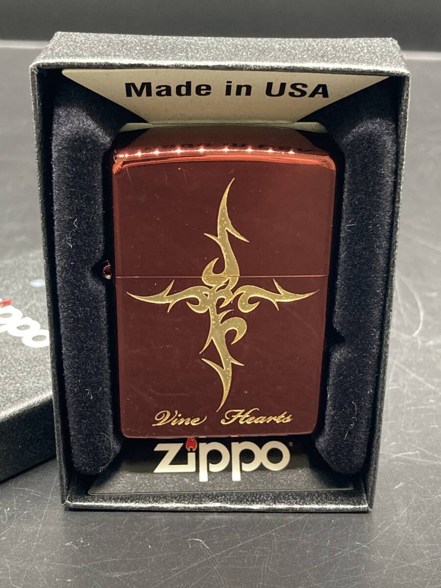 > 【3593】Zippo ジッポー Vine Hearts Vハート レッドコーティング 火花OK