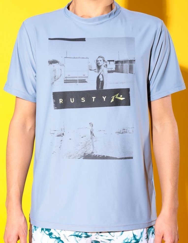 > RUSTY ラスティ 水陸両用 半袖Tシャツ フォトイラスト グレー Mサイズ BLAND-244