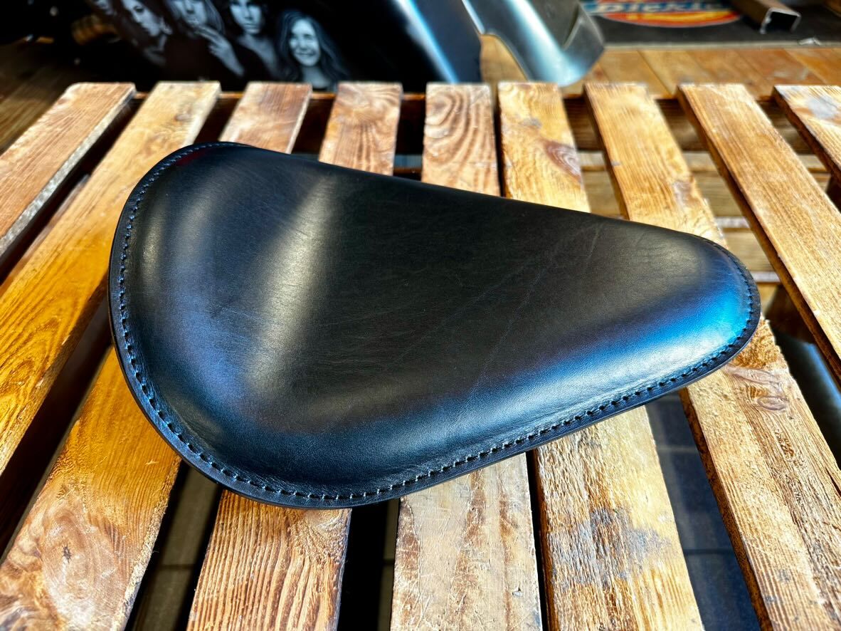 > Lucky Custom Leather製 本革サドルシート イタリアンレザー ソロシート黒 ブラック 250TR バルカン エストレヤ エストレア W650 W400