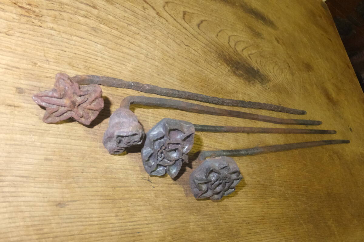 - ■ こ-78 焼印 4本 明治時代 もみじ・花型 焼きごて 古道具 単品/約寸:長さ31cm 縦4cm 幅3.5cm 重さ100g