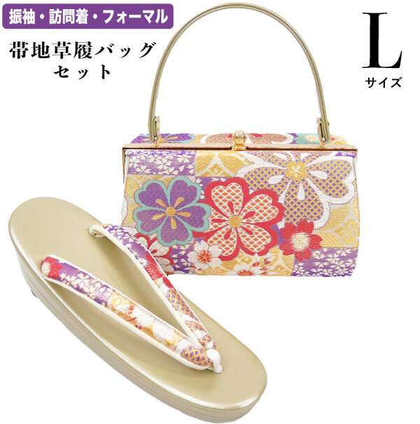 - フリーサイズ 草履バッグセット 振袖用 zb-714 成人式 結婚式 卒業式 フォーマル ゴールド